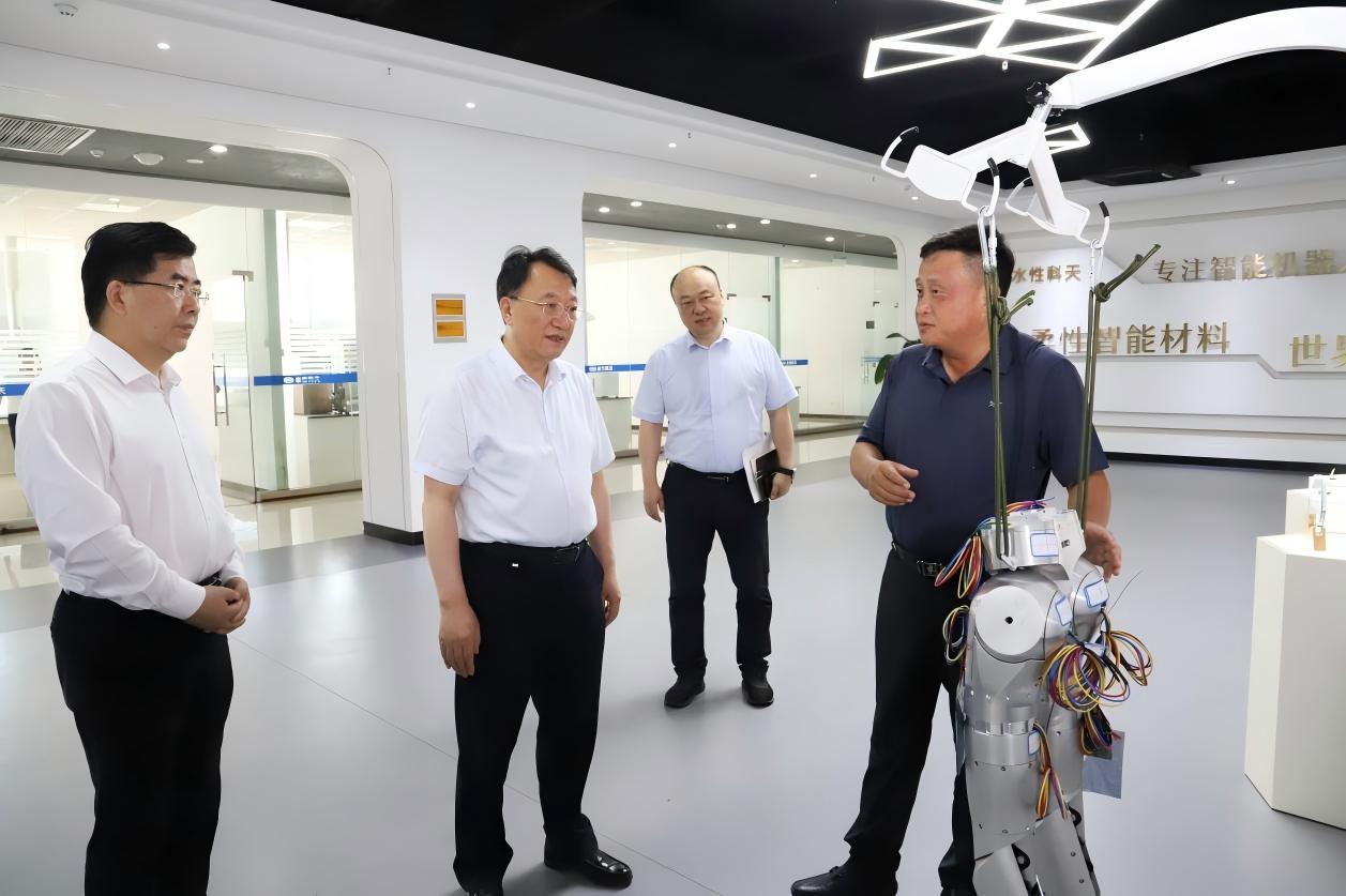 7月1日下午,合肥市委副書記、市長羅云峰走訪合肥柔性科天機器人材料有限公司(以下簡稱“柔性科天”),調研公司在人形機器人——柔性皮膚領域的研發與產業化進展。市政協副主席、市政府秘書長羅平及相關部門領導參加。科天集團董事長戴家兵博士、柔性科天負責人李維虎博士陪同匯報。