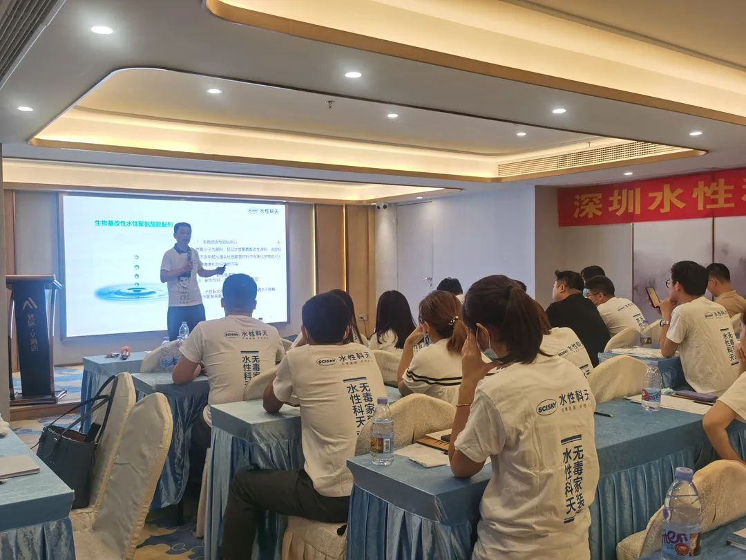 近日,水性科天無醛板專題培訓活動走進深圳市場,水性科天無醛板總代理商及12家分銷商參加此次培訓活動。專題培訓旨在讓廣大經銷商和工作人員更系統、更全面的了解水性科天無醛板材的性能和技術優勢,同時也將水性科天長期積累的營銷經驗分享給深圳經銷商,賦能深圳終端市場,幫助深圳經銷商適應行業發展節奏,快速搶占終端市場。